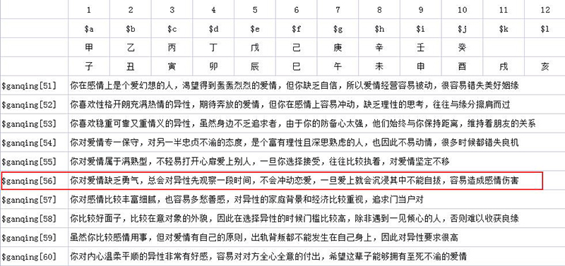 很多这种假算命软件是IT人员自己开发的,并没有师傅参与,他们并不懂算八字,无法教软件按照人工的步骤去运算,比如正确的算命步骤,首先要软件执行“判断日干在月令的旺衰程度”然后再执行......但是IT人员不懂这些算命步骤,便想出一套忽悠人的【运算方法】——把八字的天干地支各自设定数值,然后相加得出总数,再调用数据库相应的结果(看本文第一张图,IT大佬一看便知)